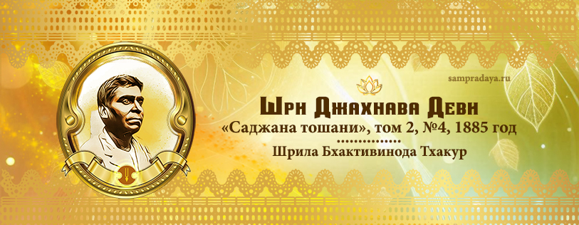 Четвёртый выпуск журнала «Саджана тошани» вышел под названием «Шримати Джахнави Парамешвари». Годовщина рождения Шри Шри Джахнавы Деви в этом году отмечается восьмого числа, в панчами месяца Вайшакха. Это день радости для маха-бхагават, поклоняющихся стопам Шри Чайтаньи. Примерно в 1409-10 гг. эры Шака (1351-52 гг. н.э.) Джахнава Деви явилась в Амбика-Калне из чрева Бхадравати, удачливой жены Шри Сурья даса Пандита, которая была очень дорога Махапрабху (1). В подходящее время Джахнава, наделённая всеми хорошими качествами, вместе со своей старшей сестрой Шримати Васудхой Деви, вышла замуж за Шри Нитьянанду Прабху.