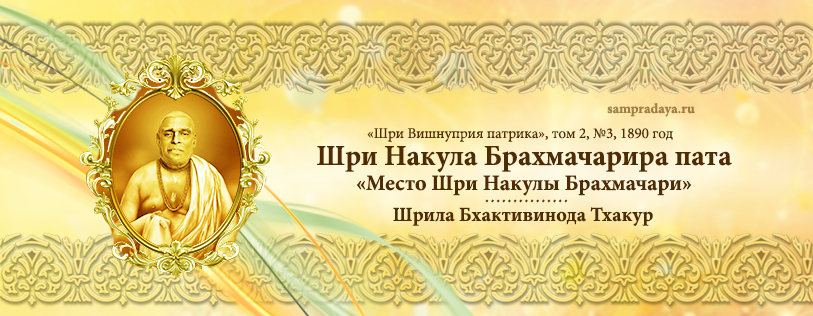 В этой ранней статье, «Шри Накула Брахмачарира пата» («Место Шри Накулы Брахмачари»), впервые опубликованной в «Шри Вишнуприя патрике», том 2, №3 в 1890 году, Шрила Бхактивинода Тхакур рассказывает о том, как он посетил 9 апреля 1890 года святое место, где жил Накула Брахмачари. Накула Брахмачари является вечным спутником Махапрабху. Шрила Бхактивинода Тхакур выступает против сложившейся ситуации и объясняет, что отречённые вайшнавы должны избегать общения с женщинами.